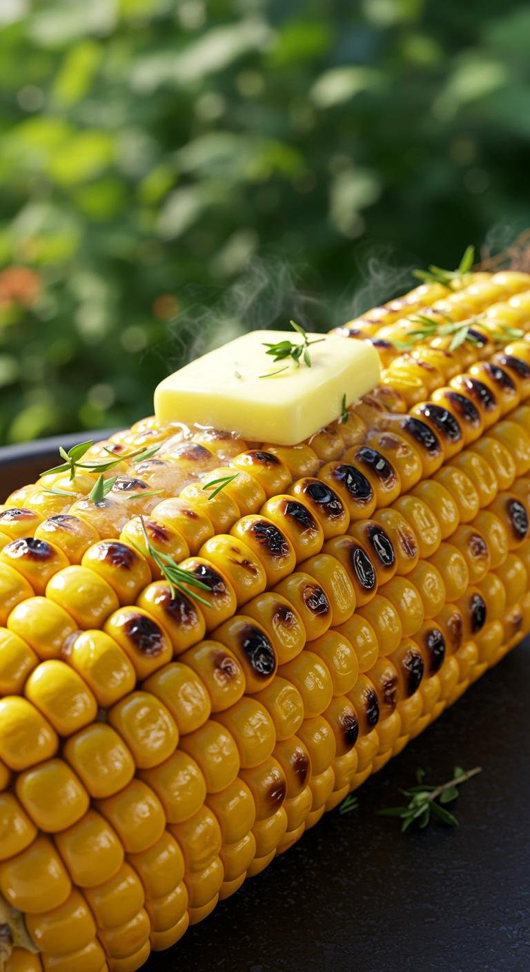 - Husk corn and brush with melted butter, salt, and pepper.