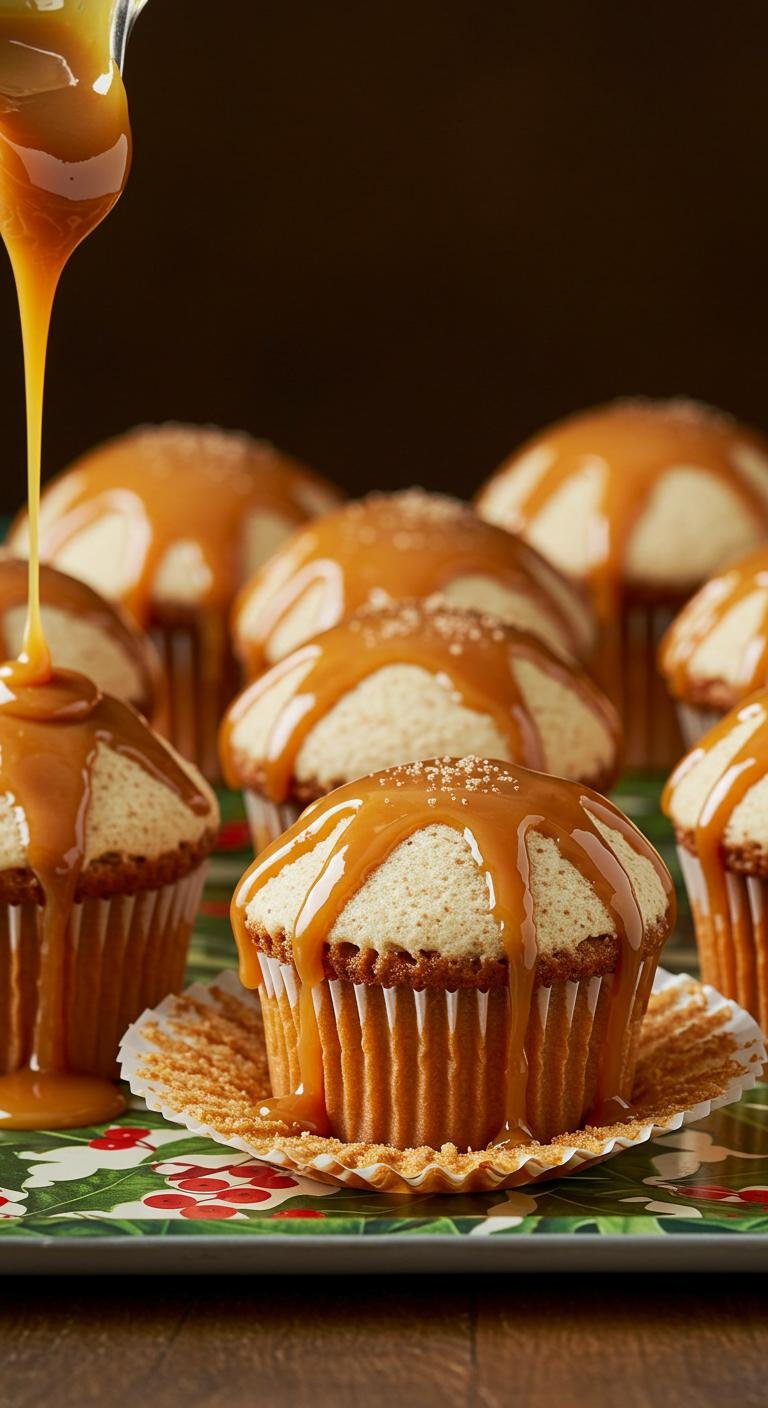 - Bake for 15-18 minutes, cool, then drizzle with caramel and sprinkle with nutmeg.