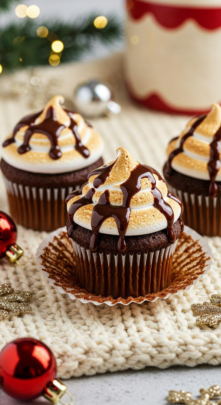 Indulge in the flavors of hot cocoa with these rich cupcakes.