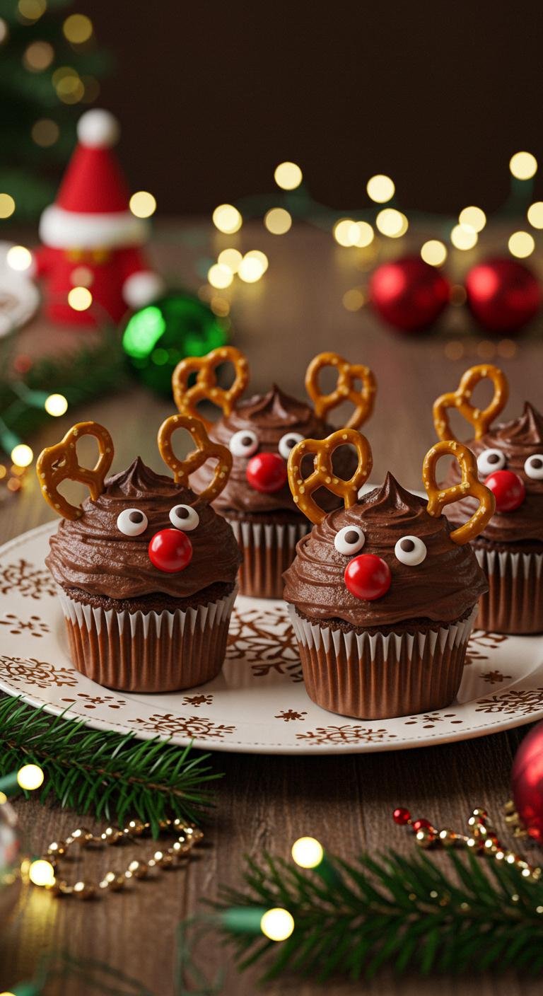 - Frost with chocolate icing, add pretzel antlers, and finish with candy noses.