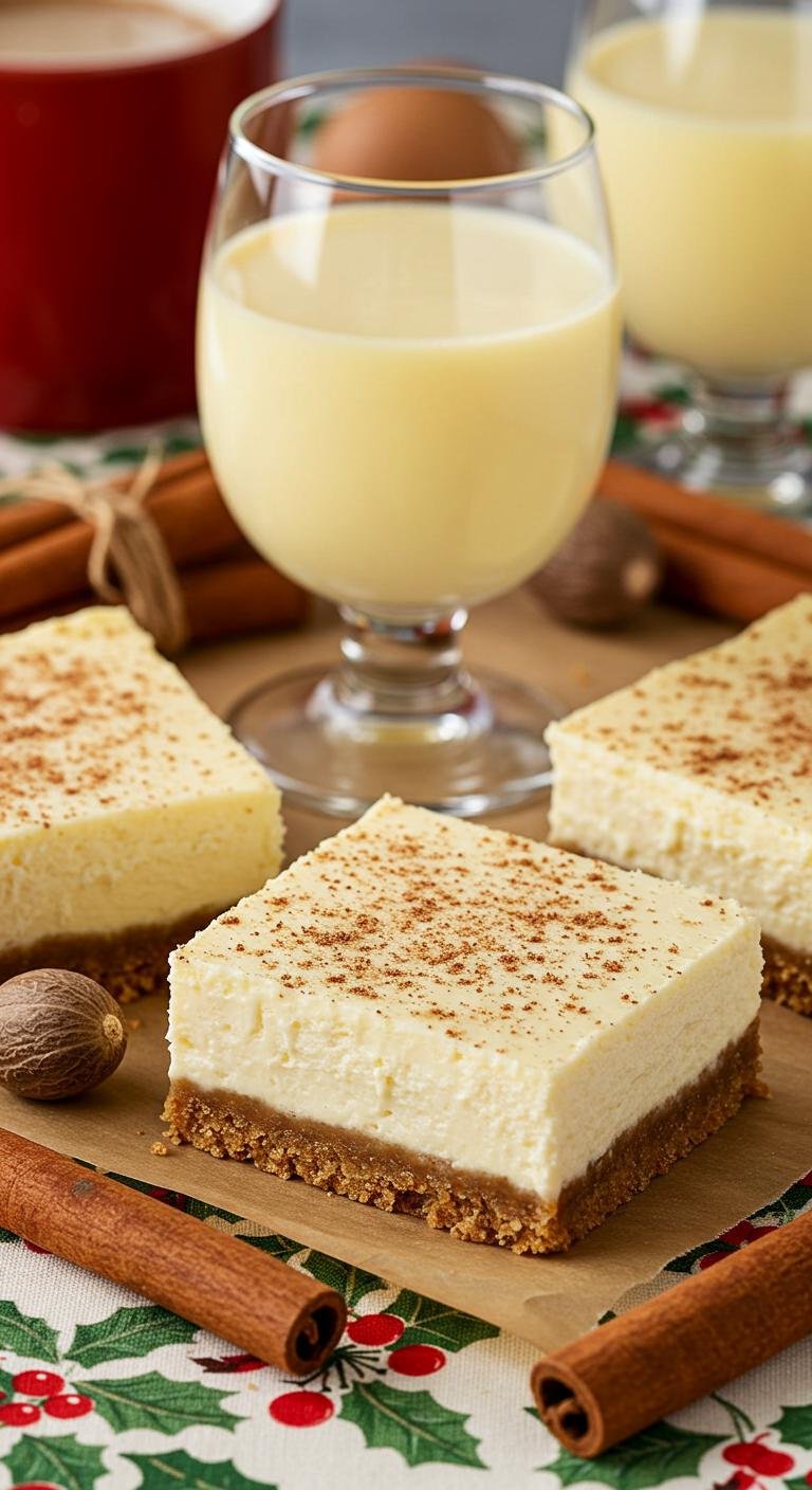 - Bake until set, cool, cut into bars, and sprinkle with nutmeg.