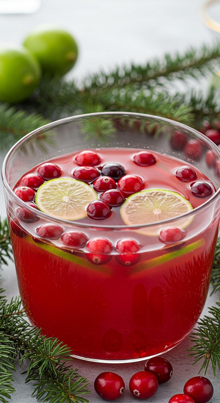 - Garnish with lime slices and cranberries before serving.