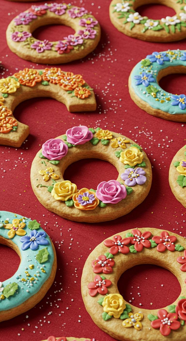 - Roll out, cut into wreath shapes, and bake at 350°F (175°C) for 10-12 minutes.