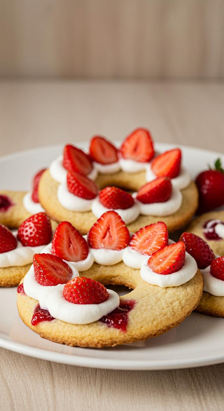 - Bake at 350°F (175°C) for 12 minutes, then top with whipped cream and strawberries.