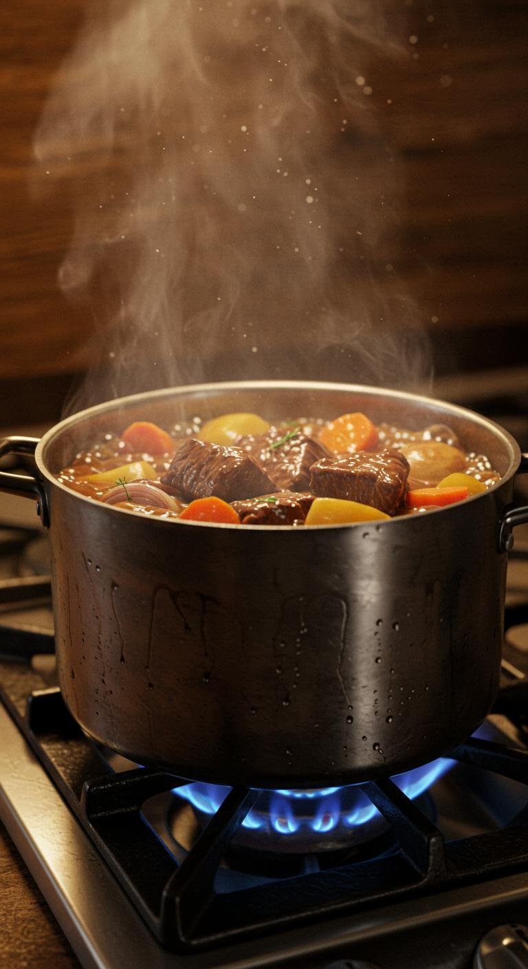 - Pour in broth, then add veggies and seasonings. Simmer for 1.5–2 hours.