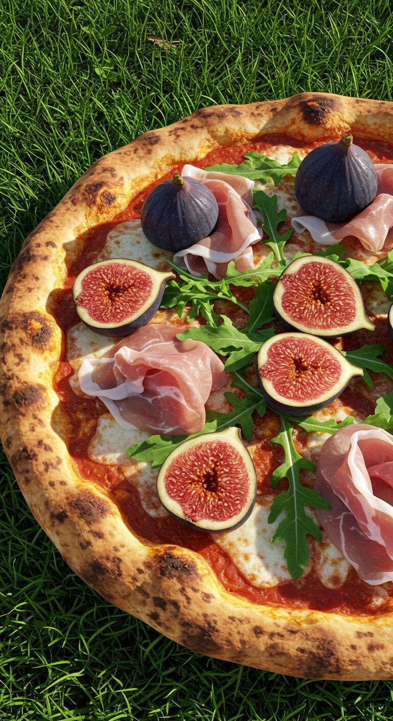 - Top with figs and prosciutto before baking for 10-12 minutes.