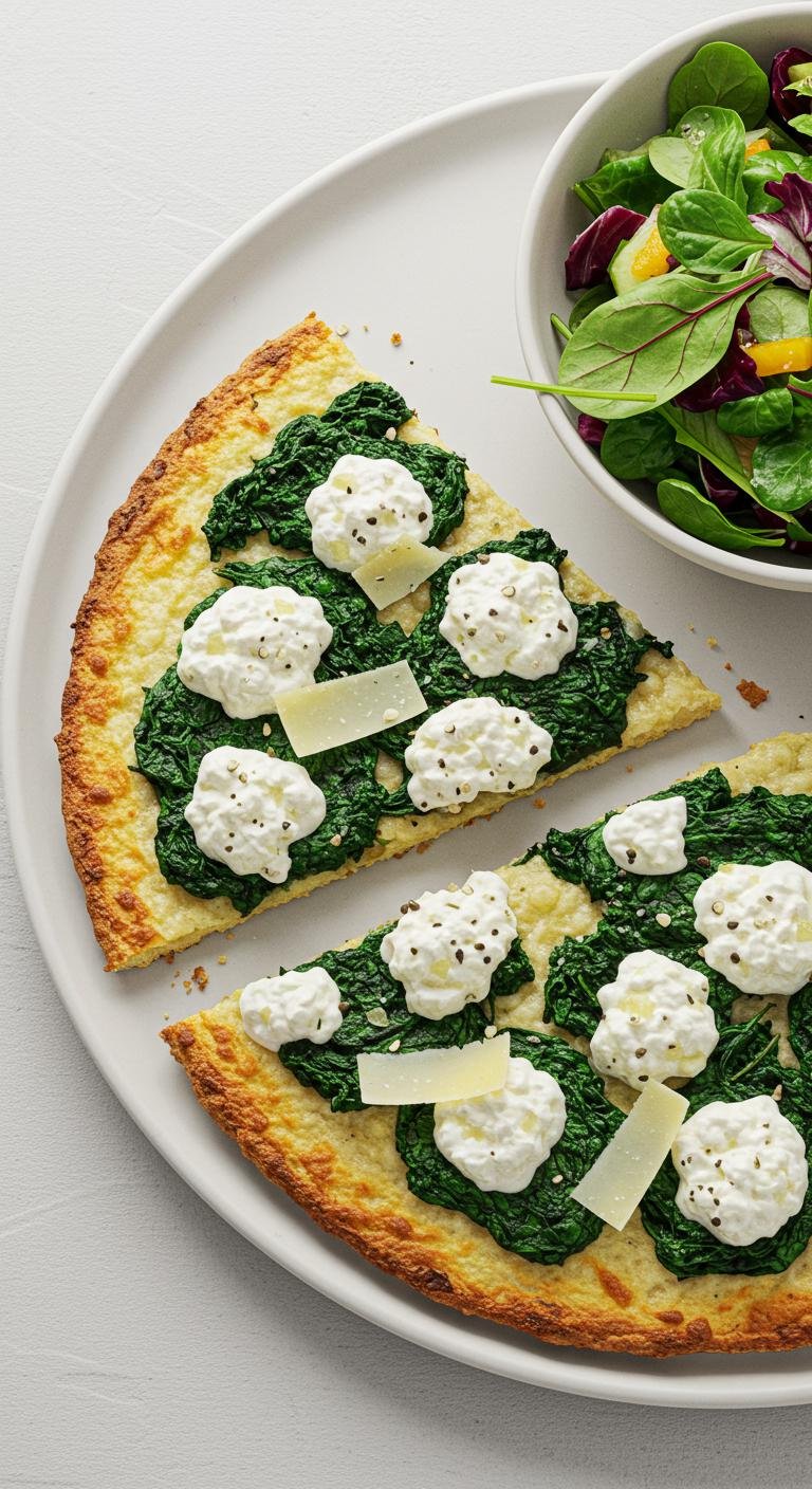 10. Cheesy Cauliflower and Spinach Pizza