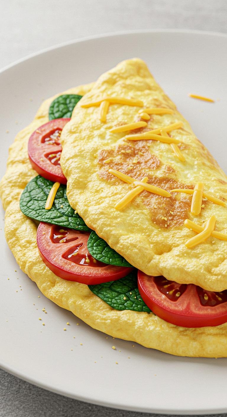 - Add spinach and tomatoes, cook until set, then fold and serve.