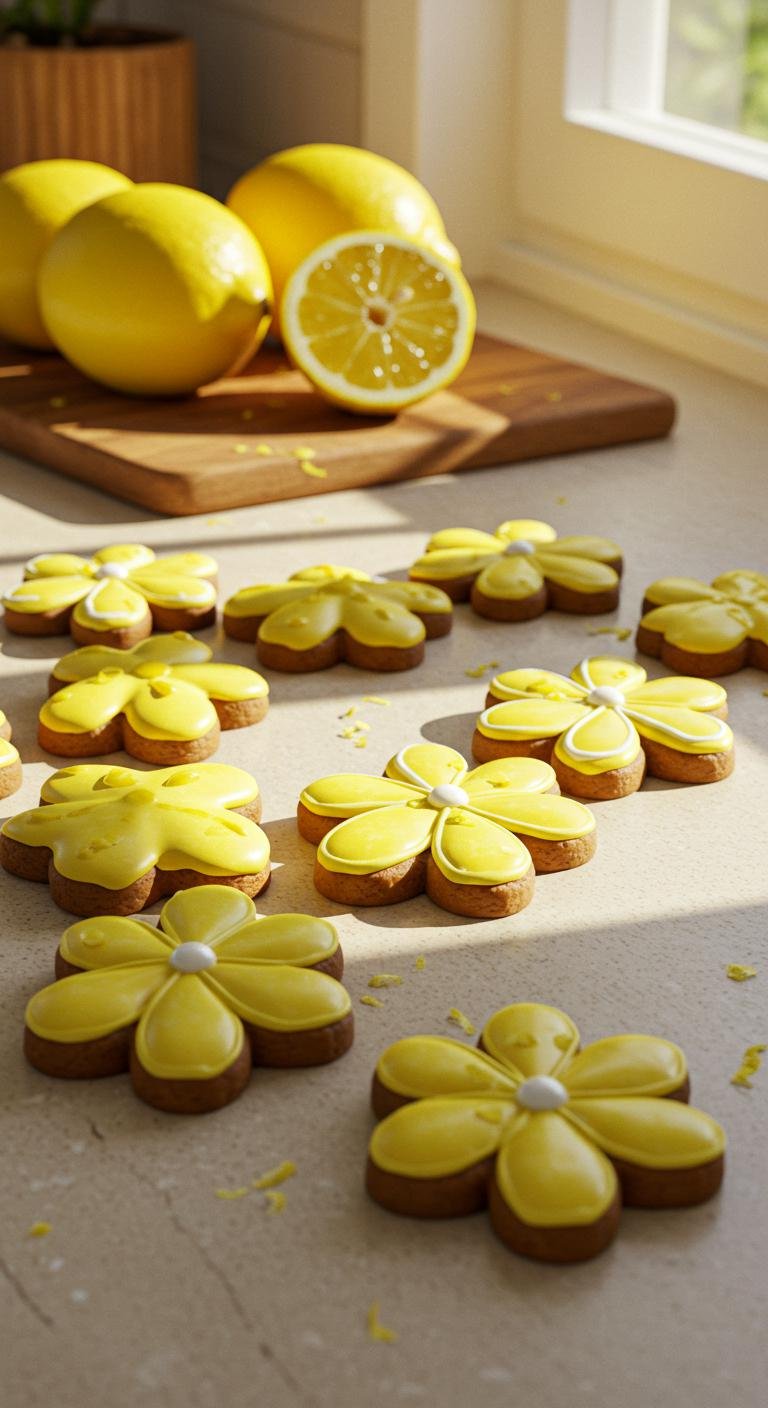 - Roll, cut shapes, bake for 10-12 minutes, and glaze with lemon juice.