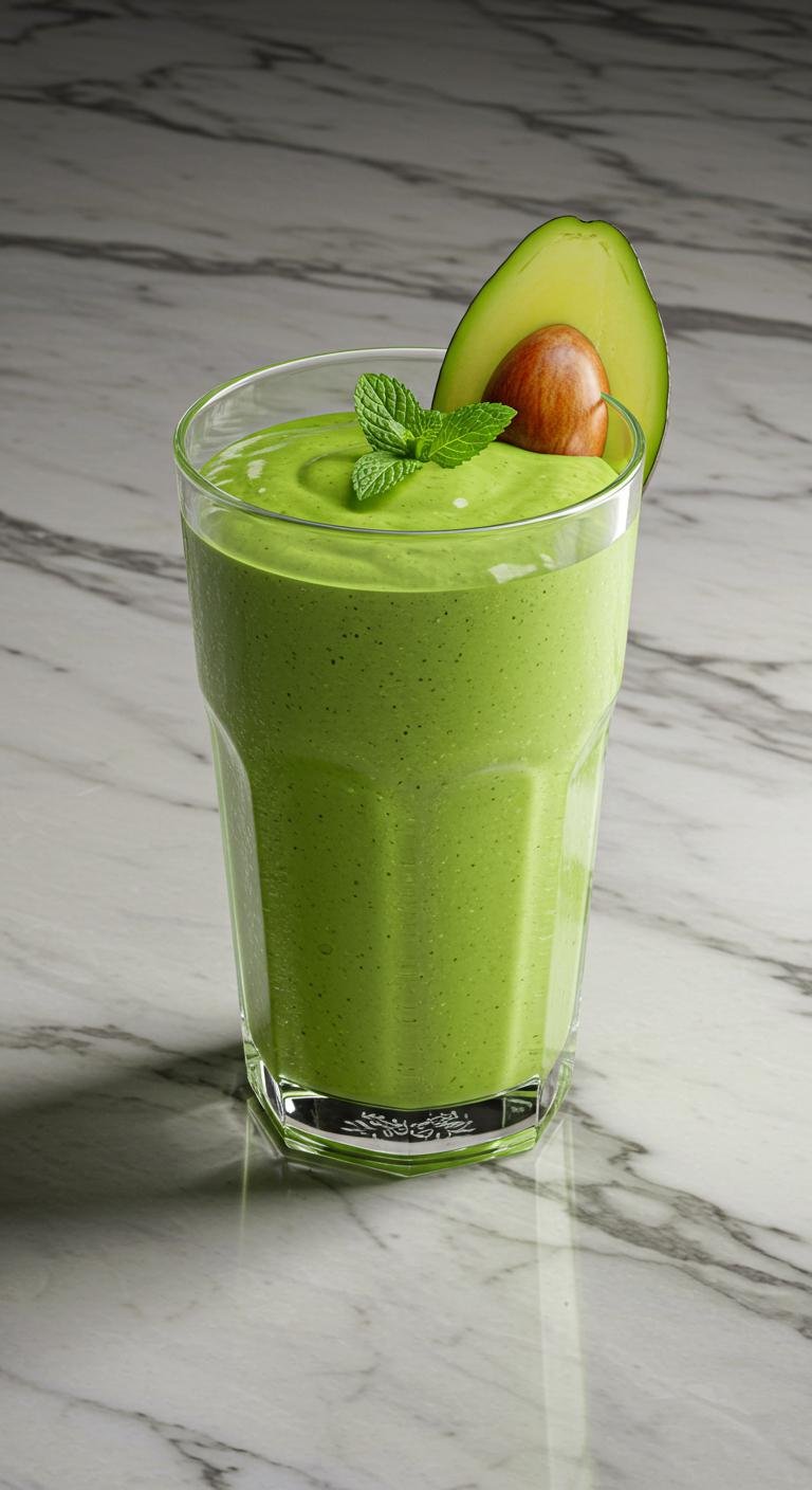 - Blend avocado, spinach, and almond milk until creamy.