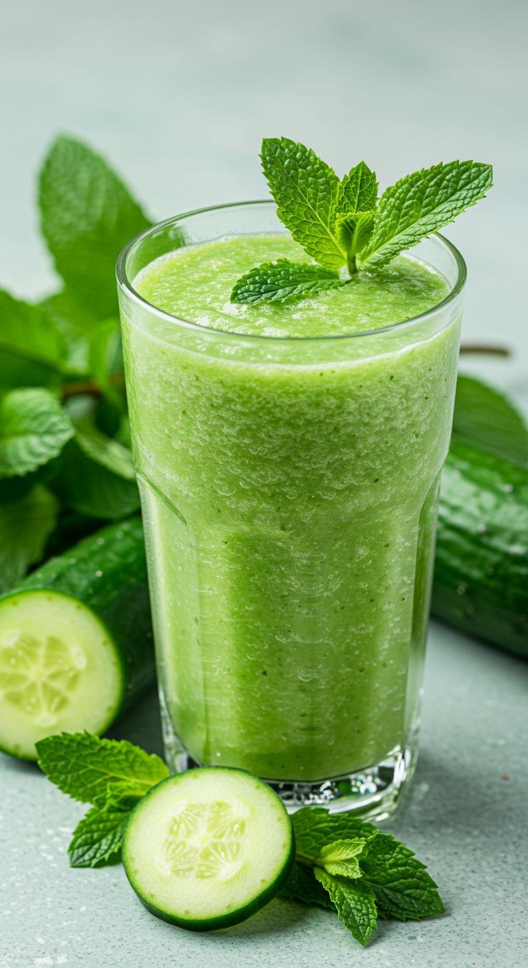 - Blend cucumber and mint with water until smooth.