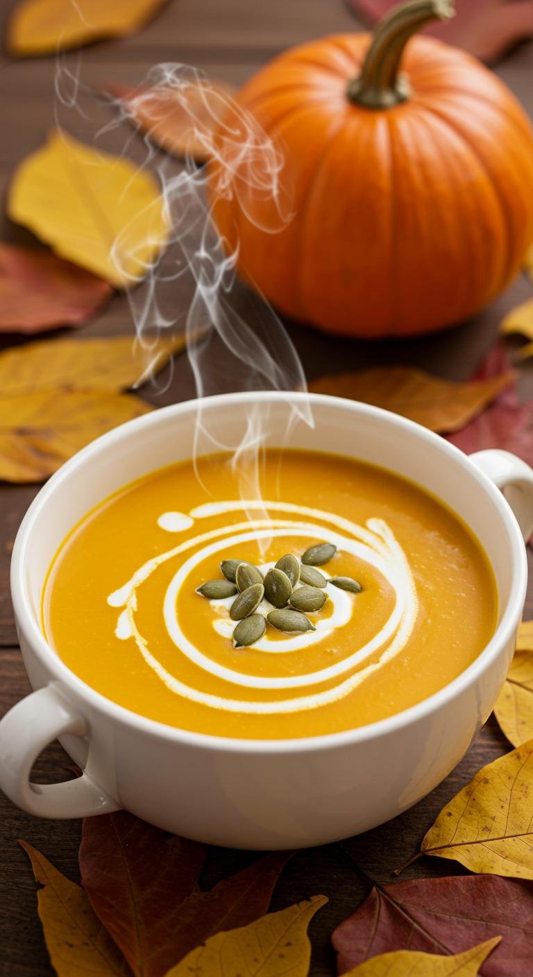 - Add pumpkin puree, broth, and spices; simmer for 20 minutes.