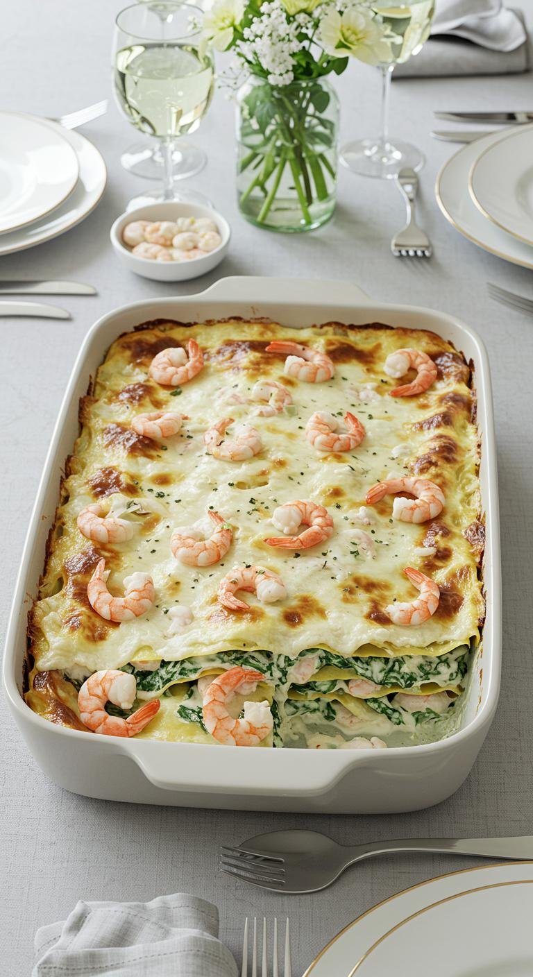 Shrimp and Creamy Spinach Lasagna