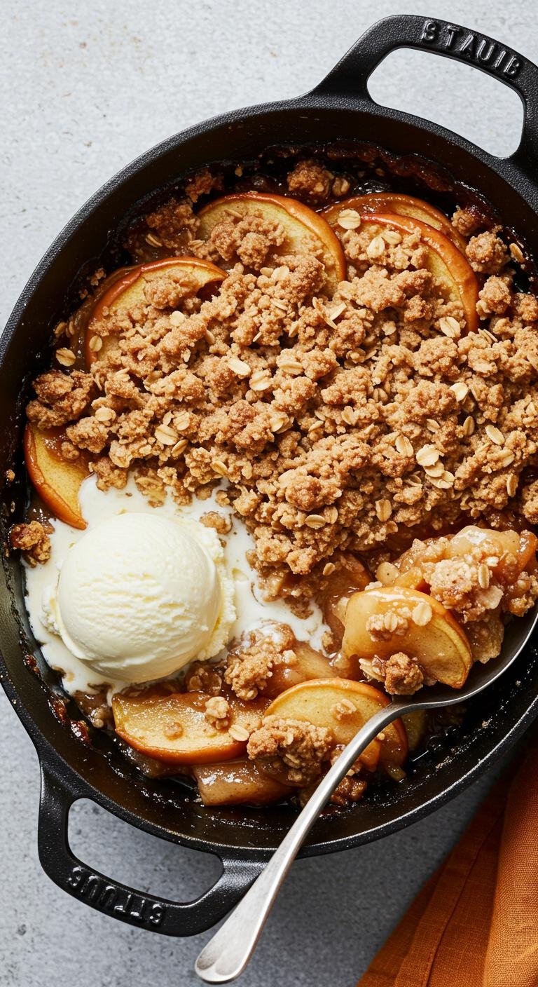 - Mix oats, flour, butter, cinnamon, and maple syrup. Pour over apples.