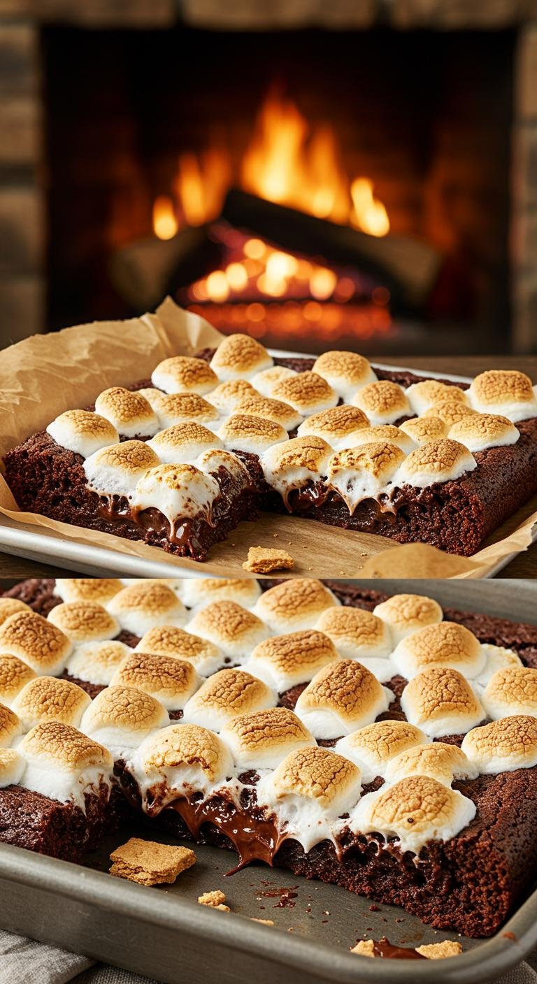 - Pour half into a baking dish, layer with mini marshmallows and graham crackers, top with remaining batter, and bake.