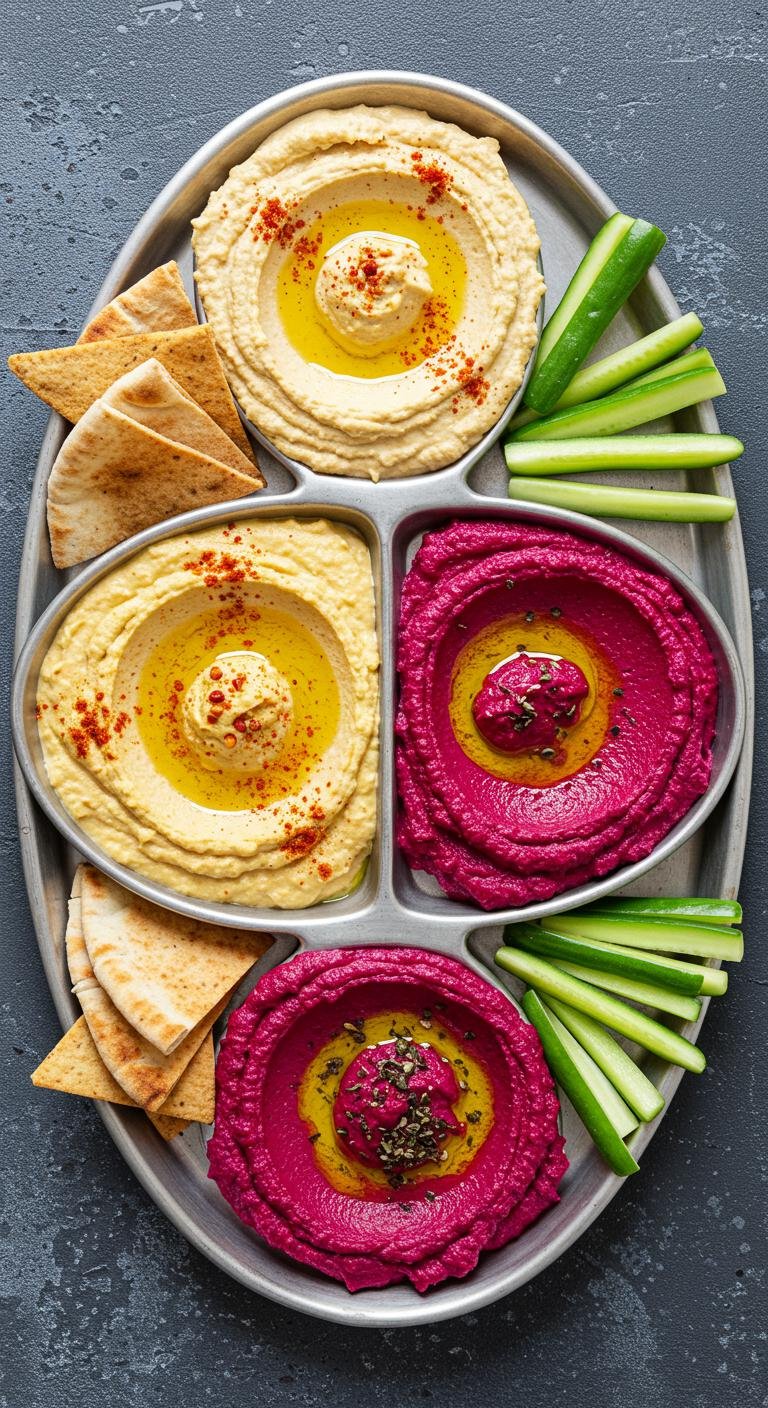Add roasted red peppers to one, fresh herbs to another, and a bit of beet puree for pink hummus.