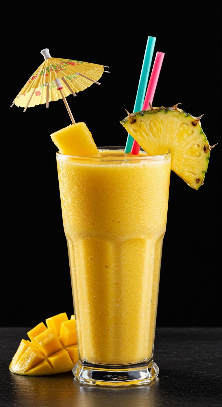 - Serve chilled, garnished with a slice of pineapple.