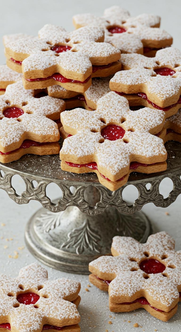 Raspberry Almond Snowflake Cookies