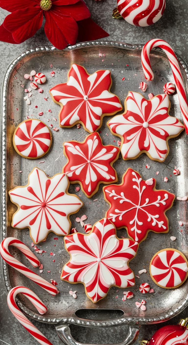 Peppermint Swirl Snowflake Cookies