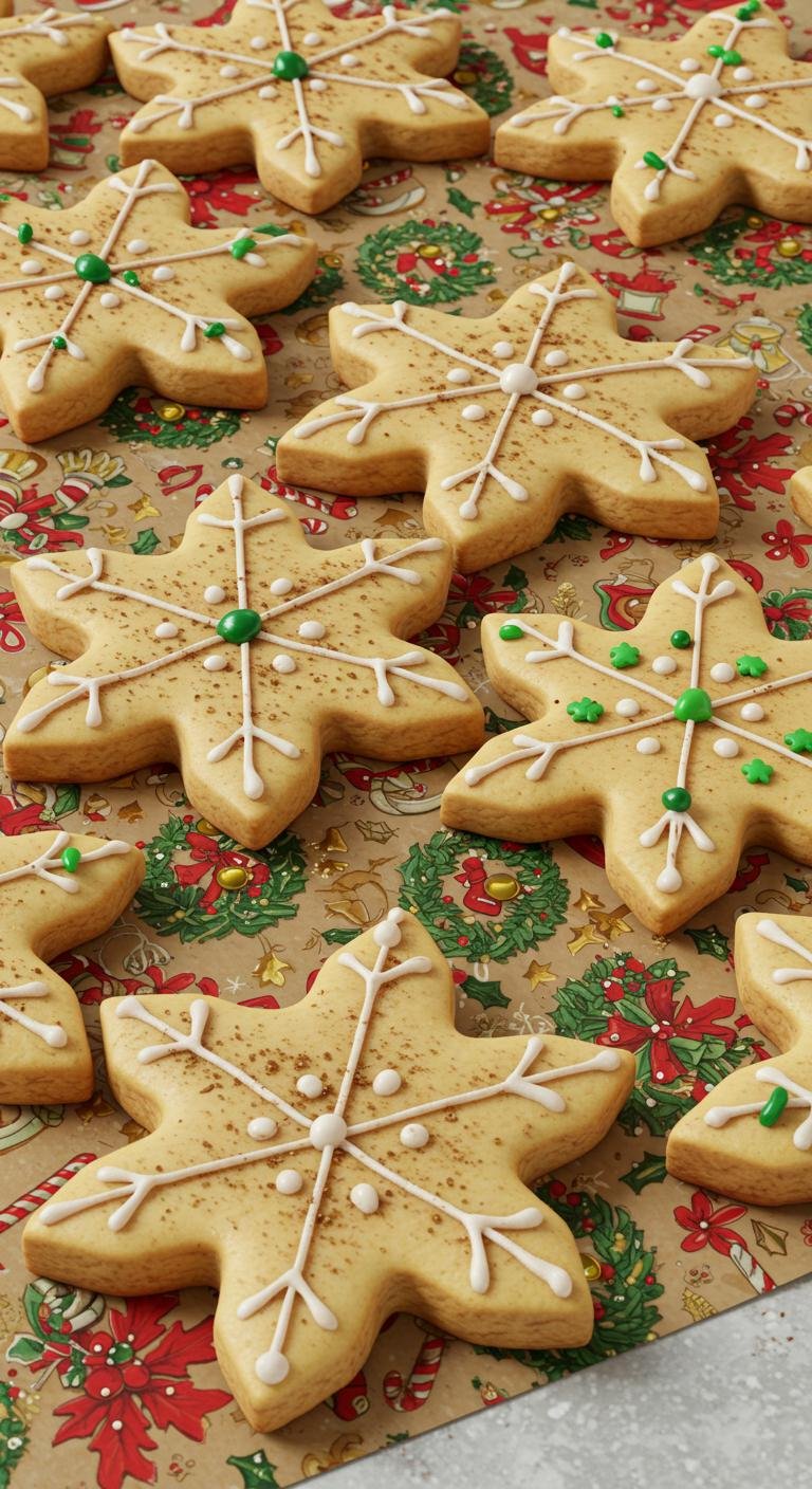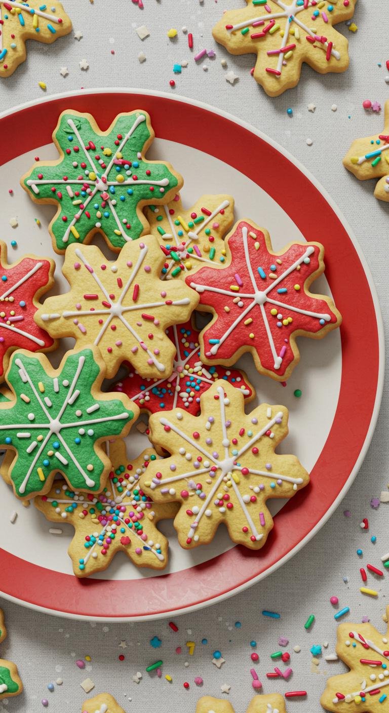 - Roll out the dough, cut into snowflake shapes, and bake for 12 minutes. Decorate with glitter after cooling.