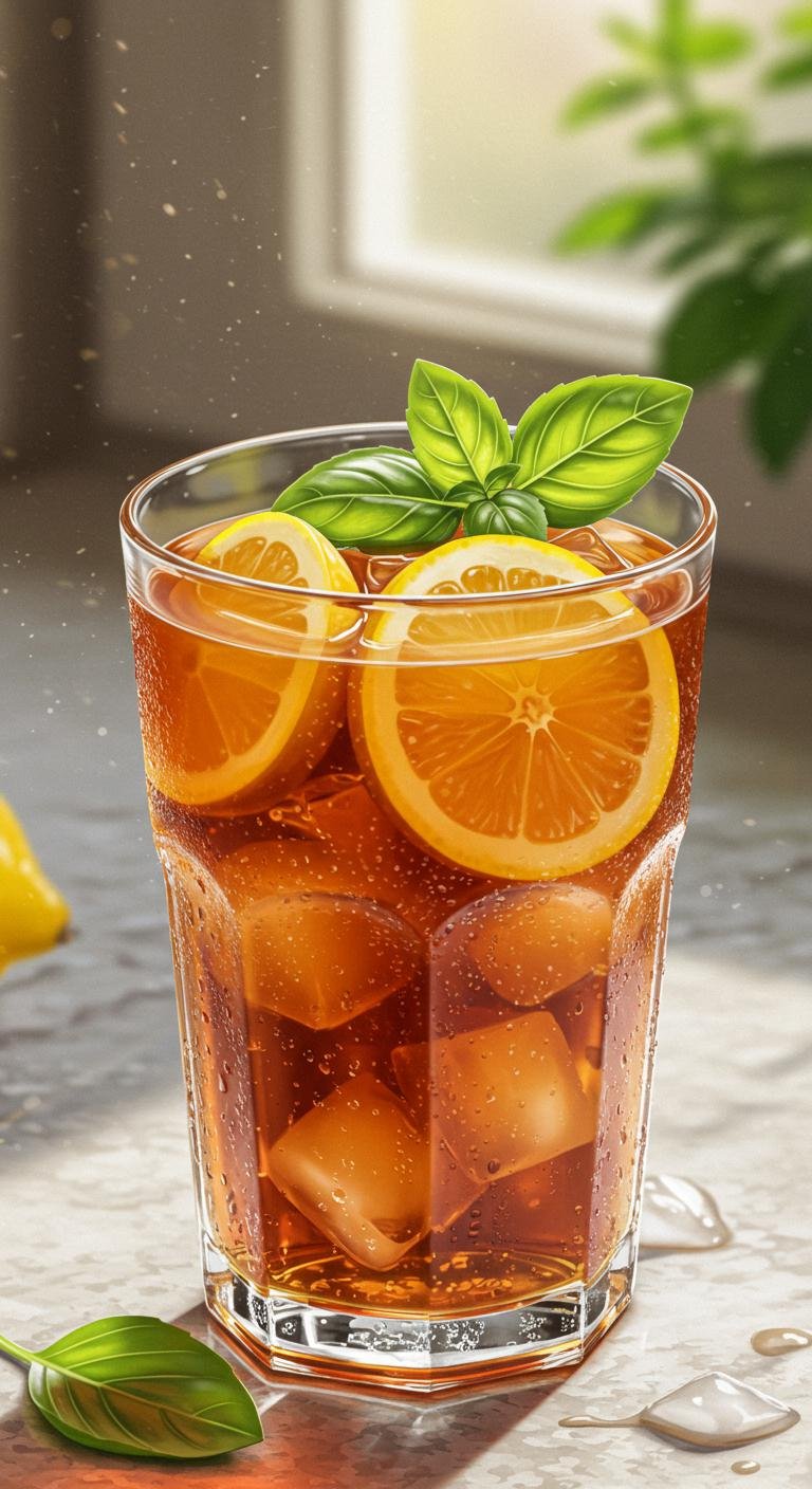 - Serve over ice and garnish with fresh basil.