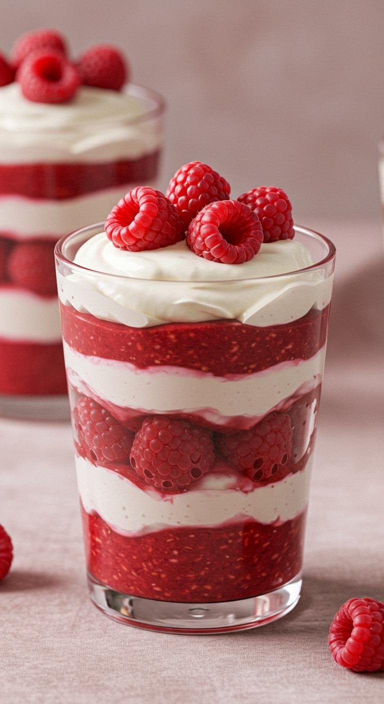 - Layer raspberry puree and whipped cream in serving glasses.