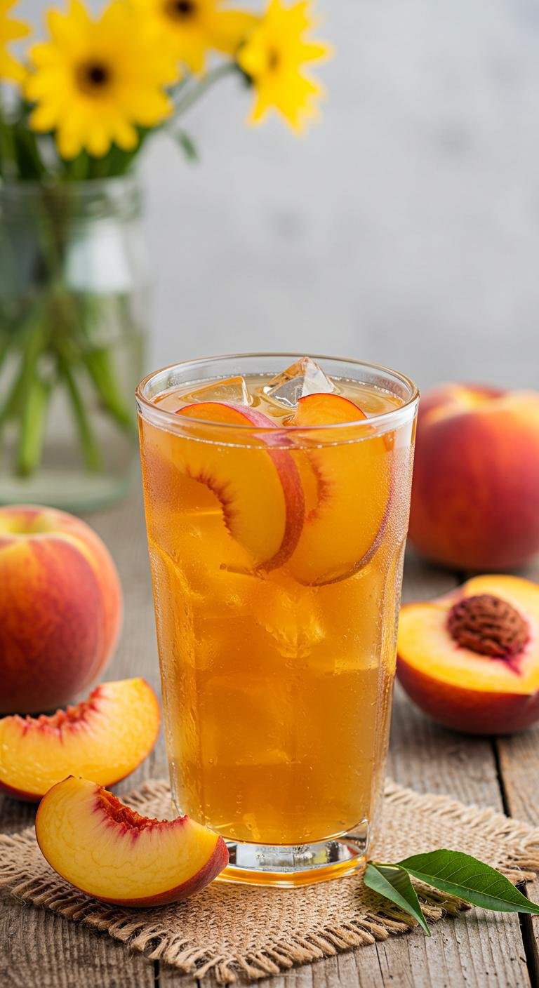 - Cool the brewed tea and mix in peach slices and sweetener.