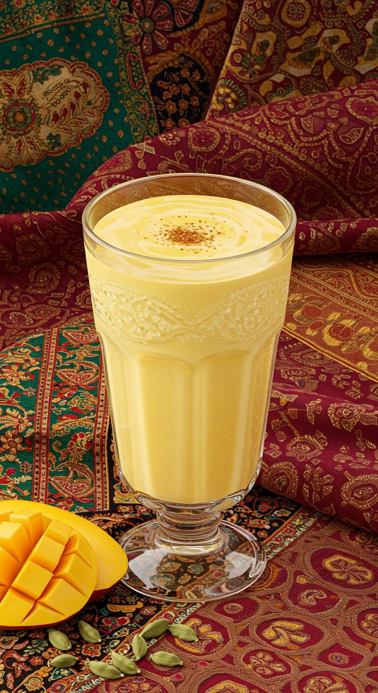 - Blend mango pulp, yogurt, milk, and sugar until smooth.