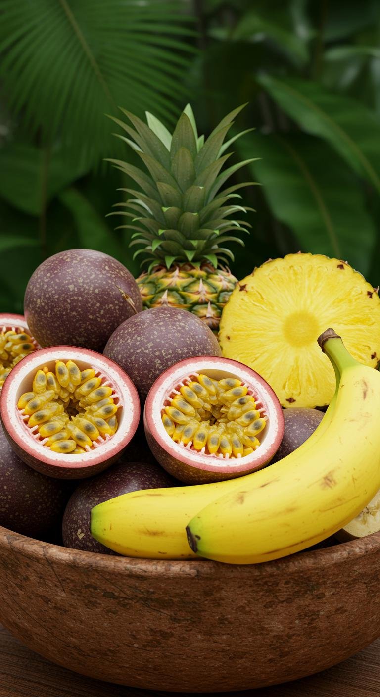 - Combine pineapple, passion fruit, and banana in a bowl.