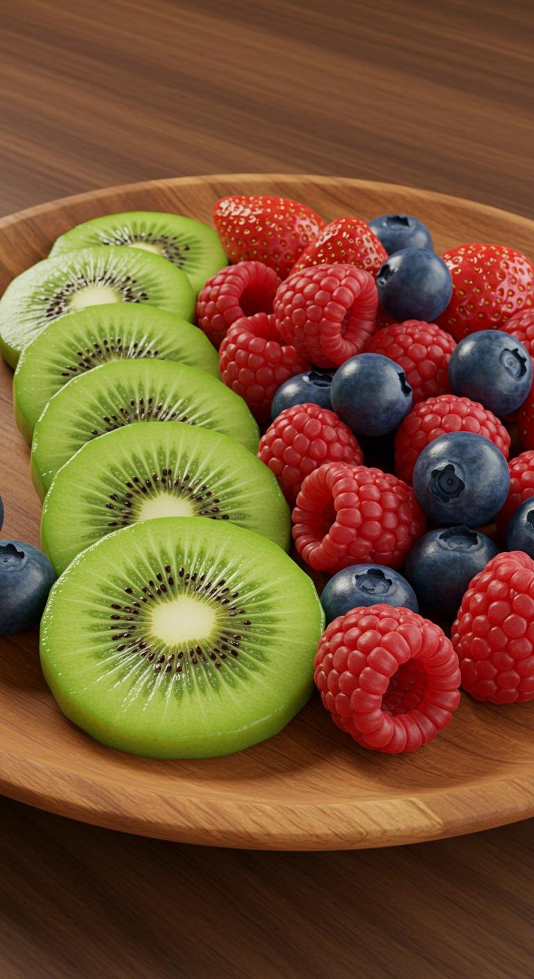 - Combine kiwis, strawberries, and blueberries in a bowl.