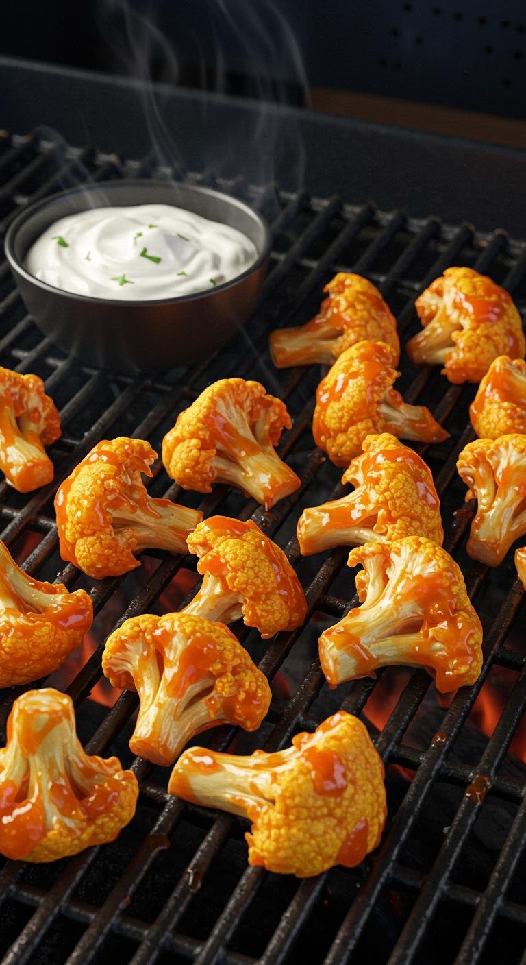 - Toss cauliflower florets in olive oil and buffalo sauce.