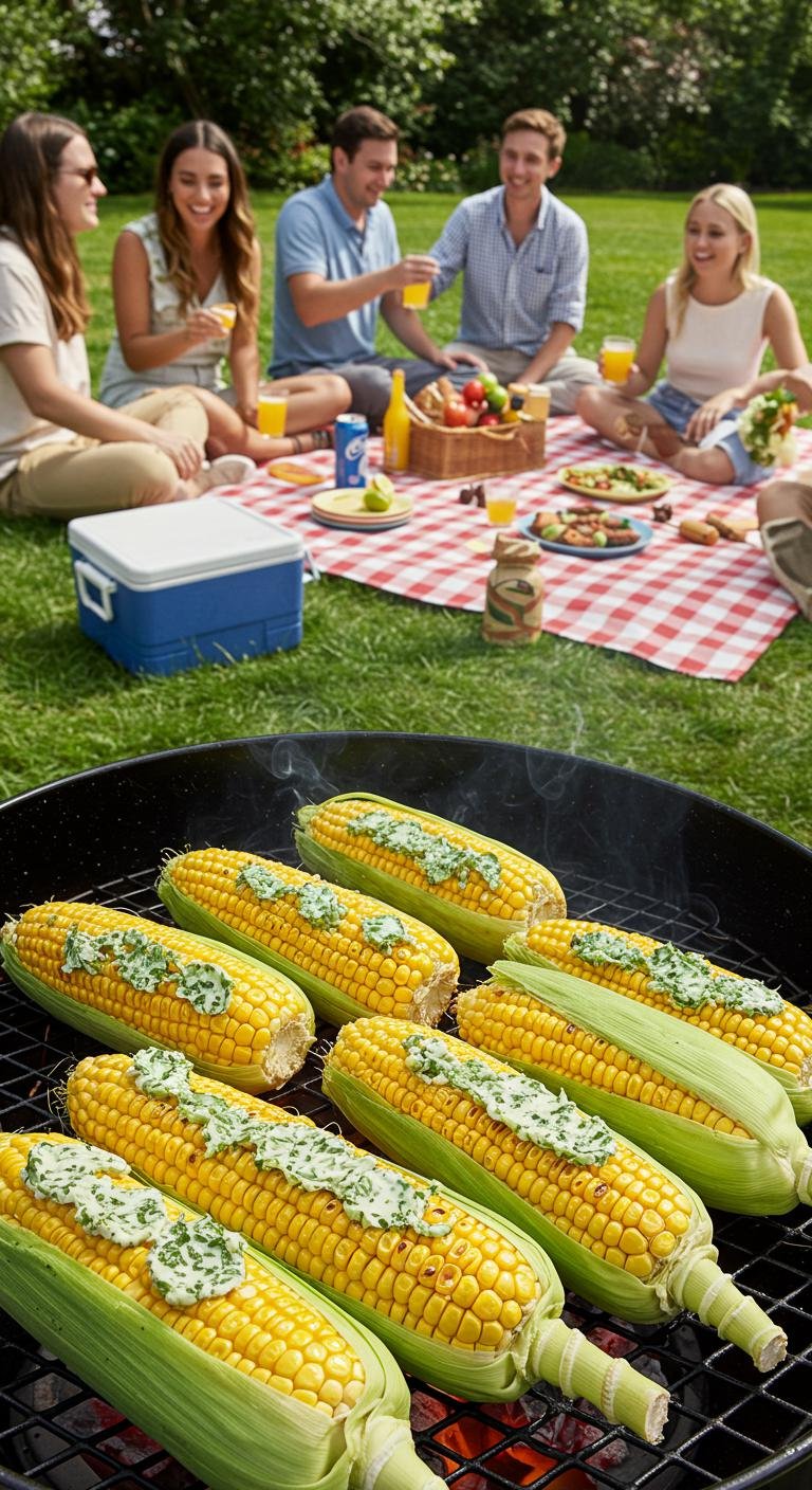 - Spread over corn and grill for 10-12 minutes, turning often.