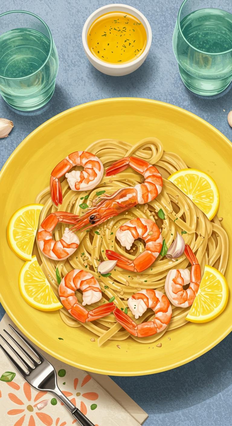 - In a large bowl, combine spaghetti, shrimp, lemon zest, and juice. Season with salt and pepper.
