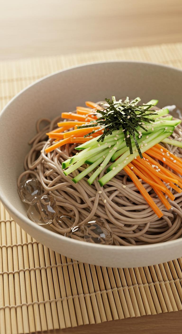 - Cook soba noodles; cool them under cold water.
