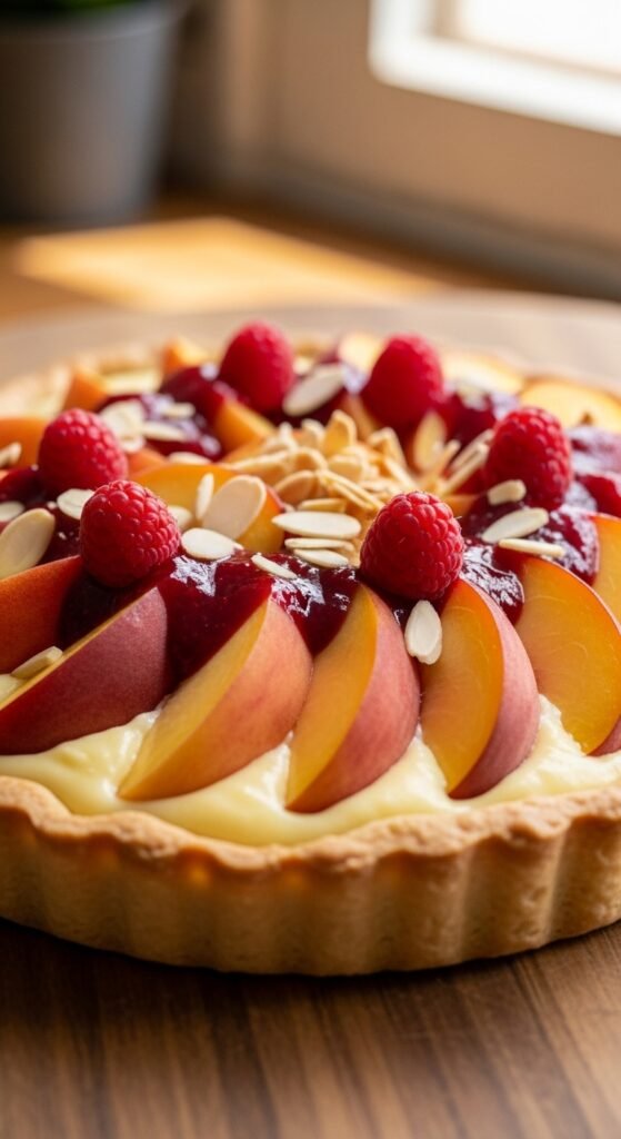 Sweet peaches meet tart raspberries in a harmonious dessert.