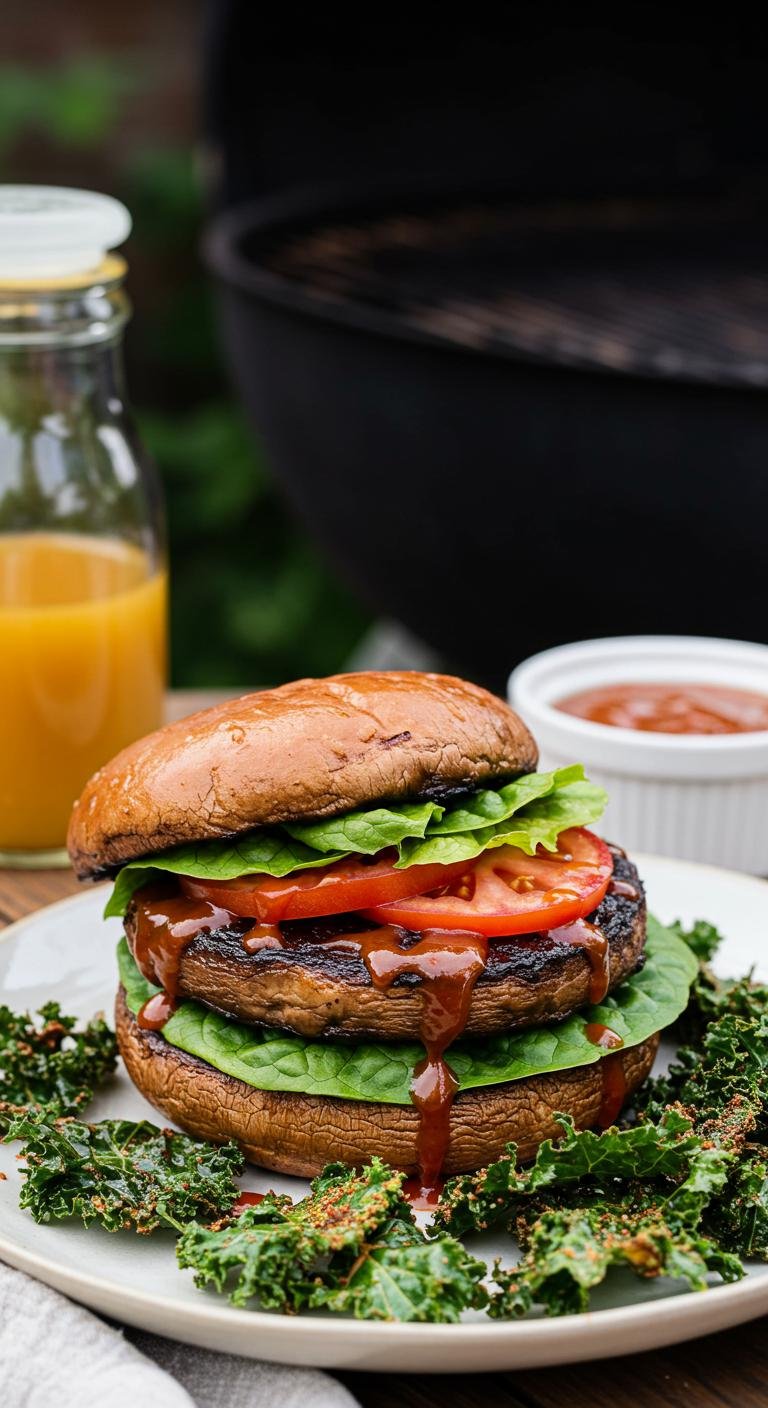 - Marinate mushrooms in BBQ sauce for at least 30 minutes.
