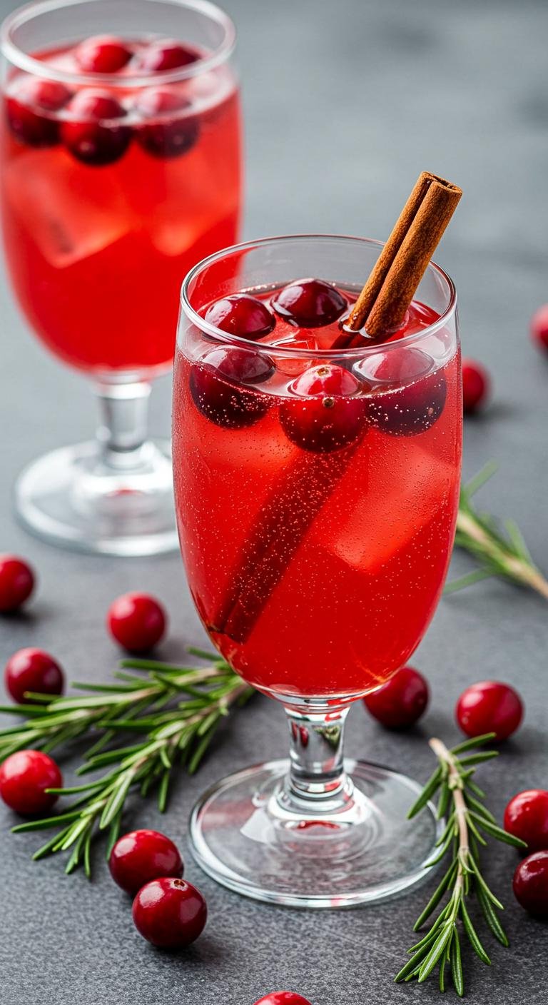 - Garnish with cranberries and a sprig of rosemary.