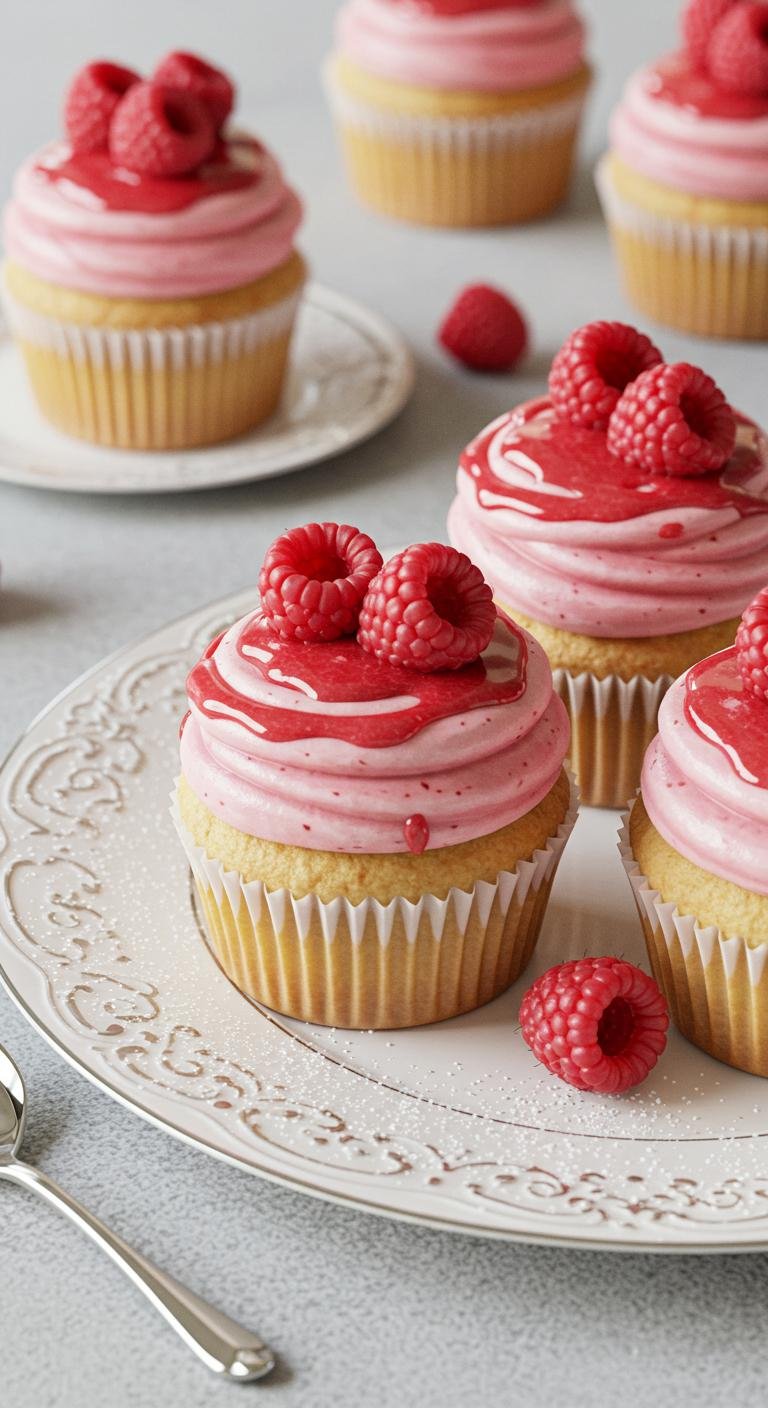 - Fill liners and bake for 18-20 minutes. Cool before adding raspberry frosting.