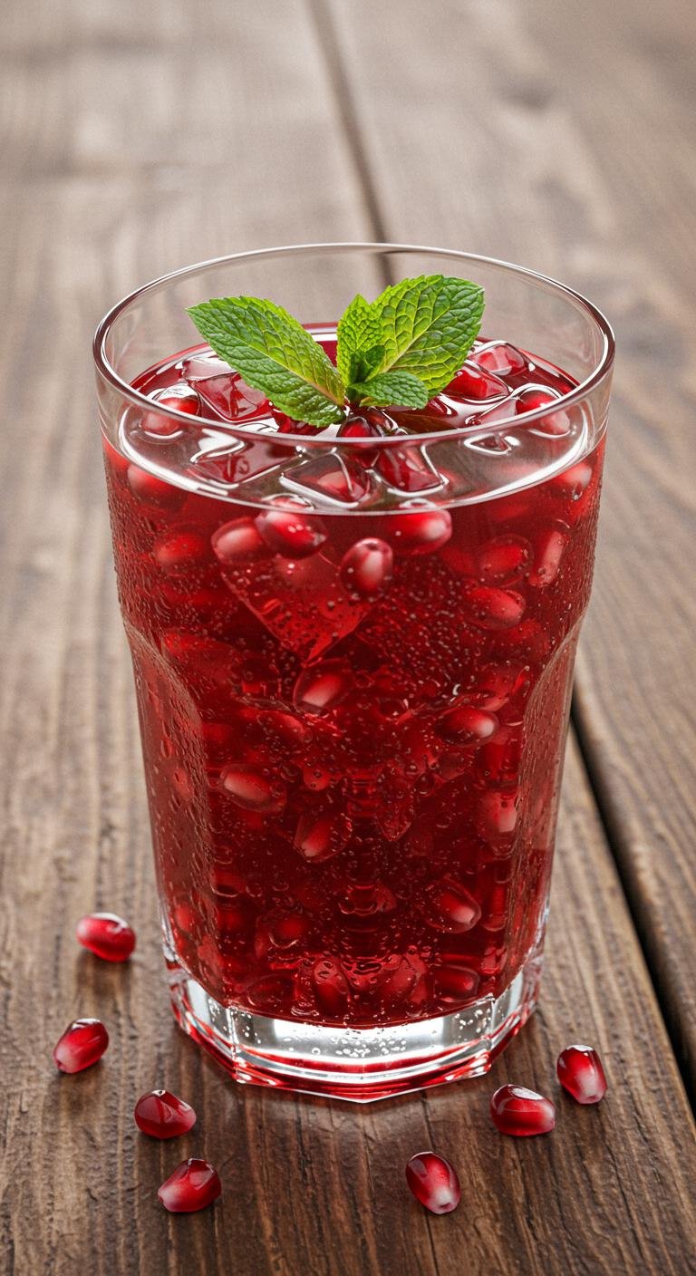 - Mix pomegranate juice with sparkling water in a glass.